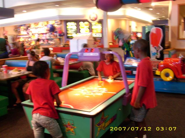 With the coupon that launched this adventure, we received 30 game tokens along with the pizza–and the boys got 15 more for the reports cards my oldest thought to bring along. He recalled this perk from almost a decade ago when he went to a Chuck E Cheeses with my sister’s kids in Tampa. I hadn’t even looked at Aidan’s report yet, but I shamelessly handed it over for more booty. There was an air of frenetic excitement in the place and I hoped it would sweep us away.